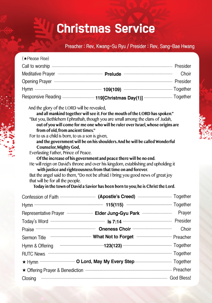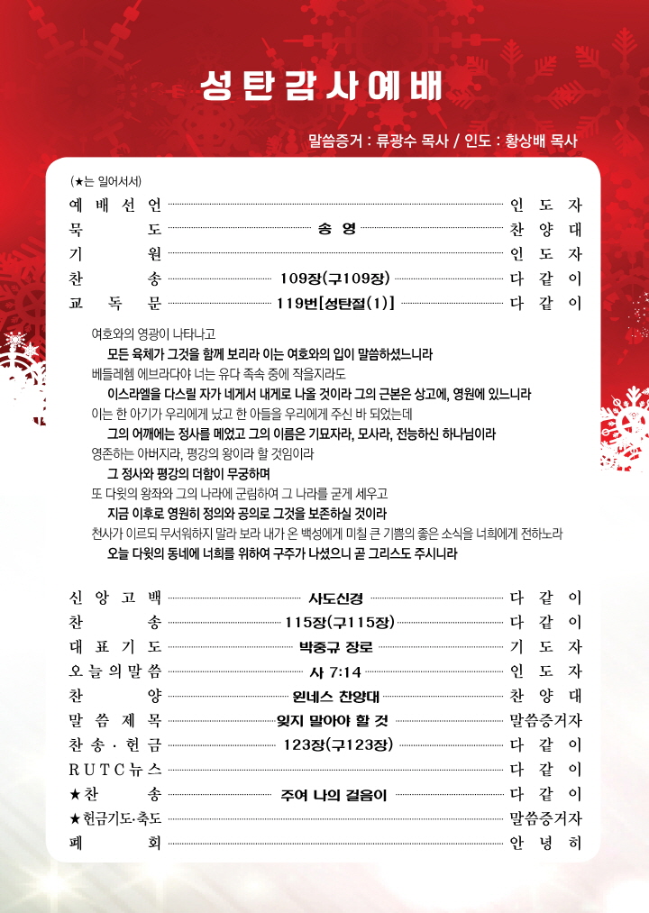 2018년 12월 25일 성탄예배 순서지