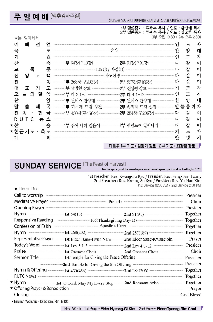 2024년 10월 20일 주일예배순서