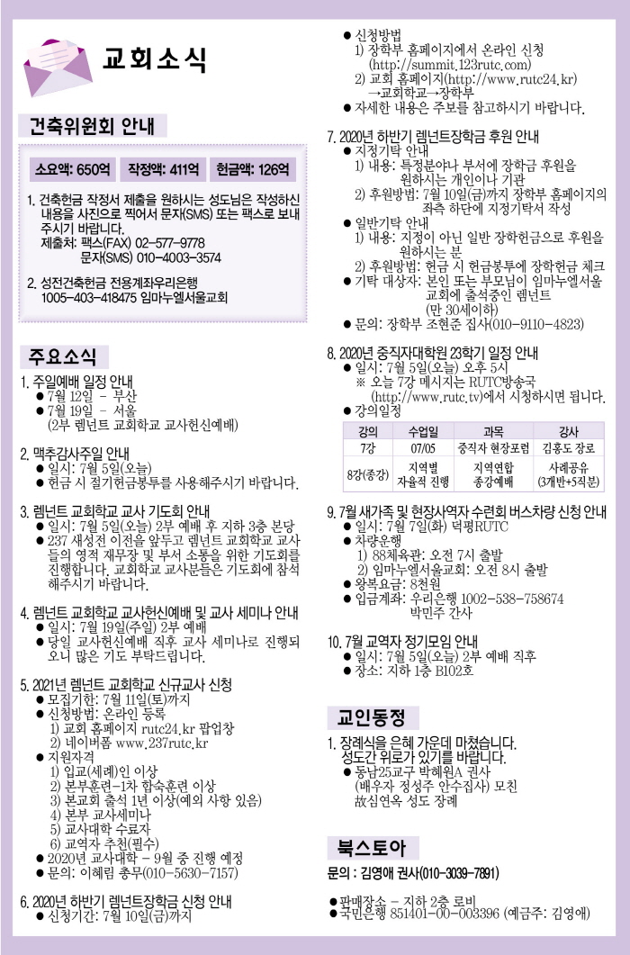 2020년 7월 5일 주보