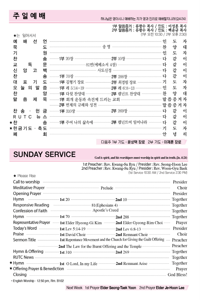2024년 10월 20일 주일예배순서