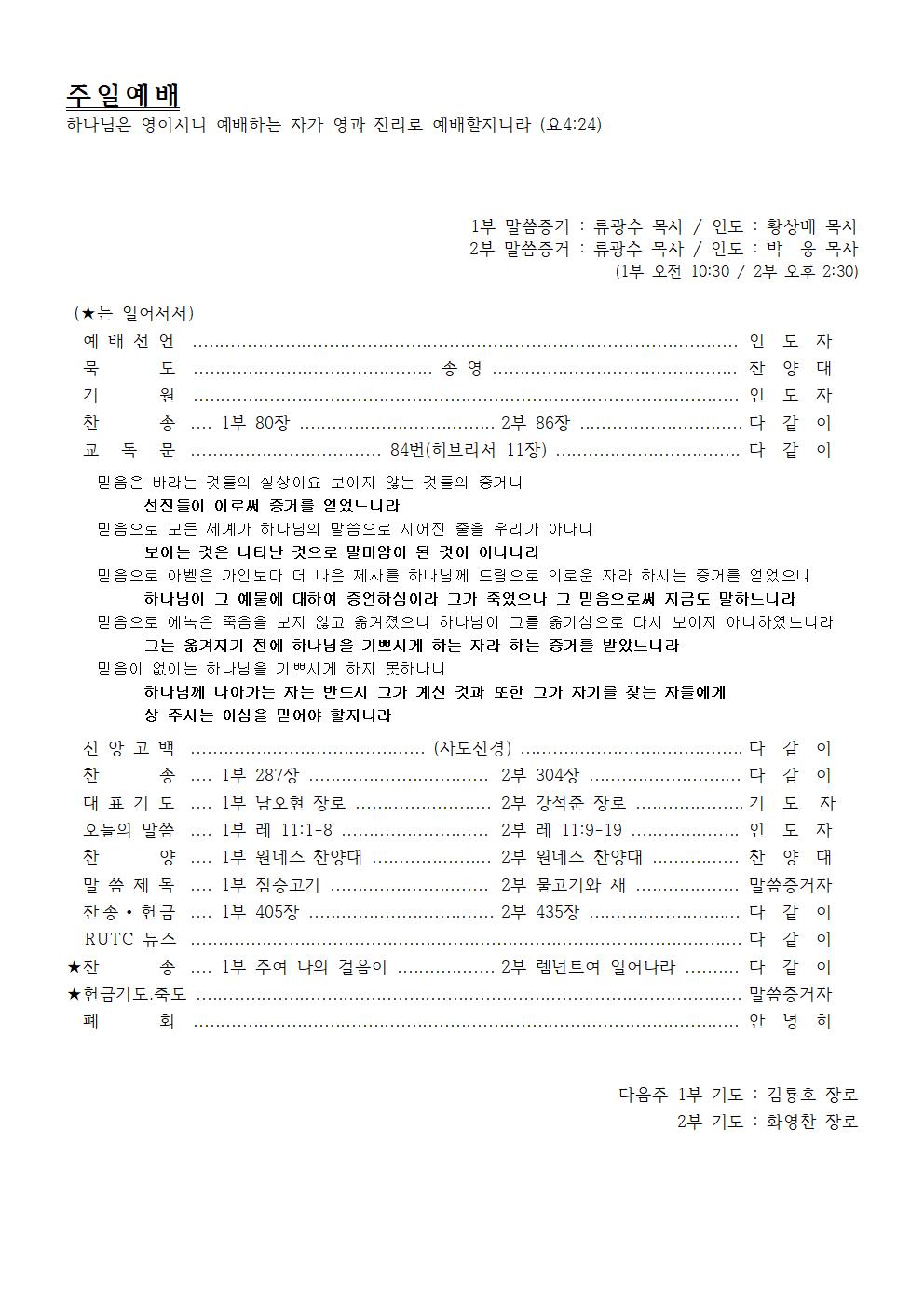 ★헌금기도․축도 …………………………………………………………………………… 말씀증거자