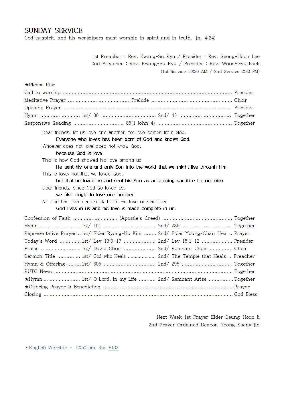 Next Week 1st Prayer Elder Seung-Hoon Ji