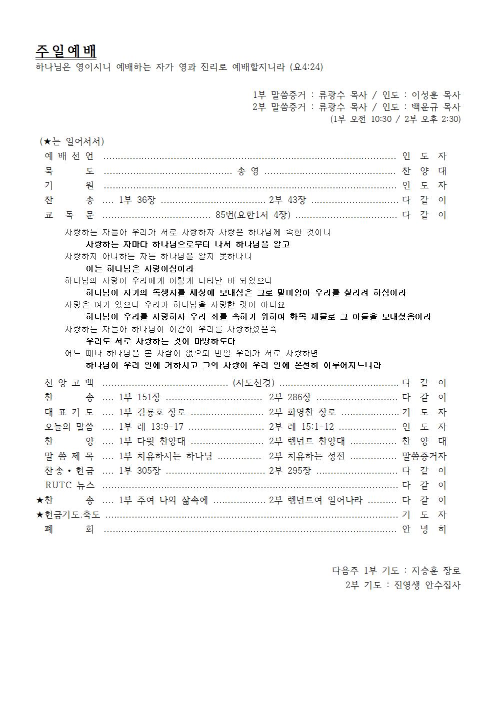 2nd Preacher : Rev. Kwang-Su Ryu / Presider : Rev. Woon-Gyu Baek