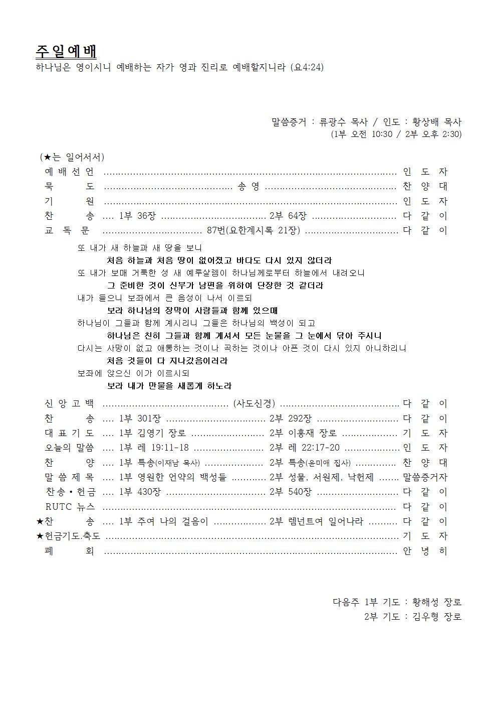 2020년 8월 23일 주일예배순서