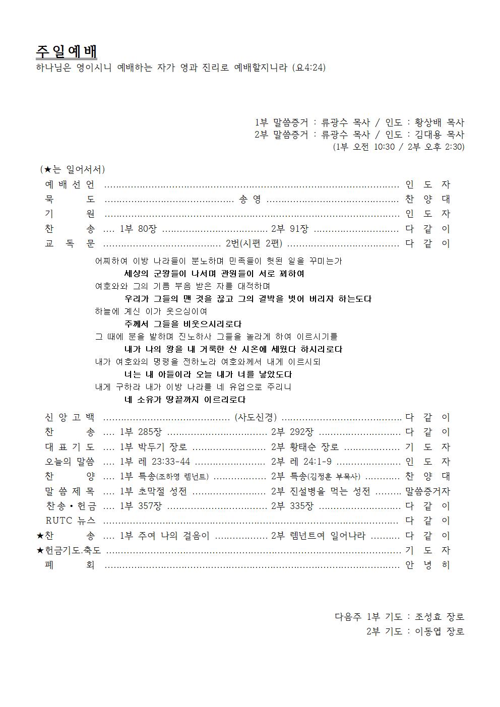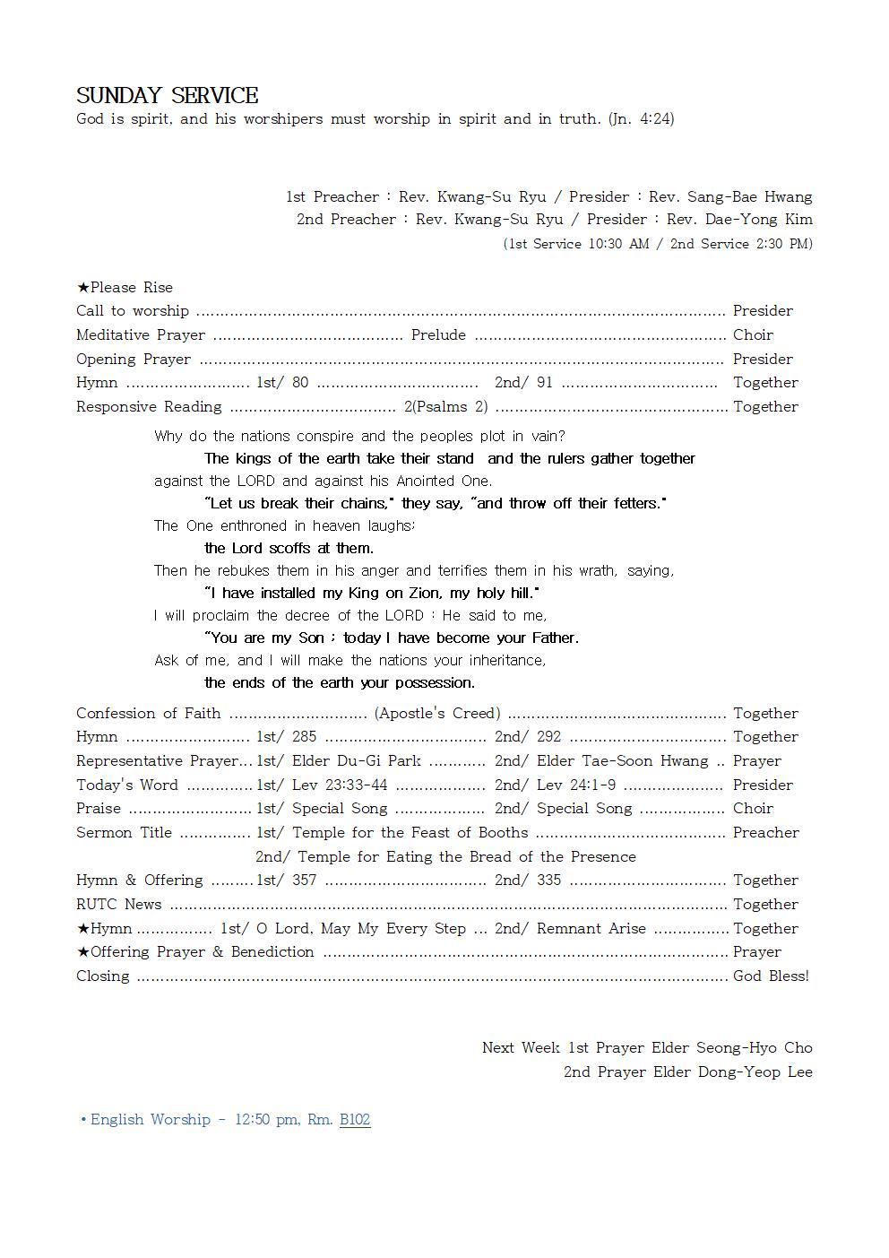 2nd Preacher : Rev. Kwang-Su Ryu / Presider : Rev. Dae-Yong Kim