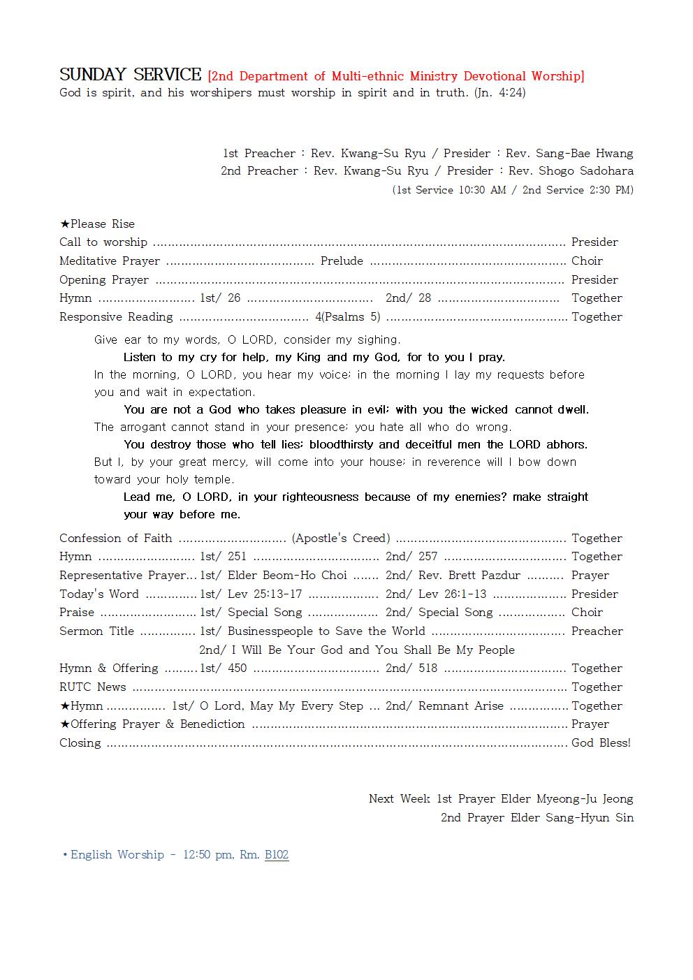 2nd Preacher : Rev. Kwang-Su Ryu / Presider : Rev. Shogo Sadohara