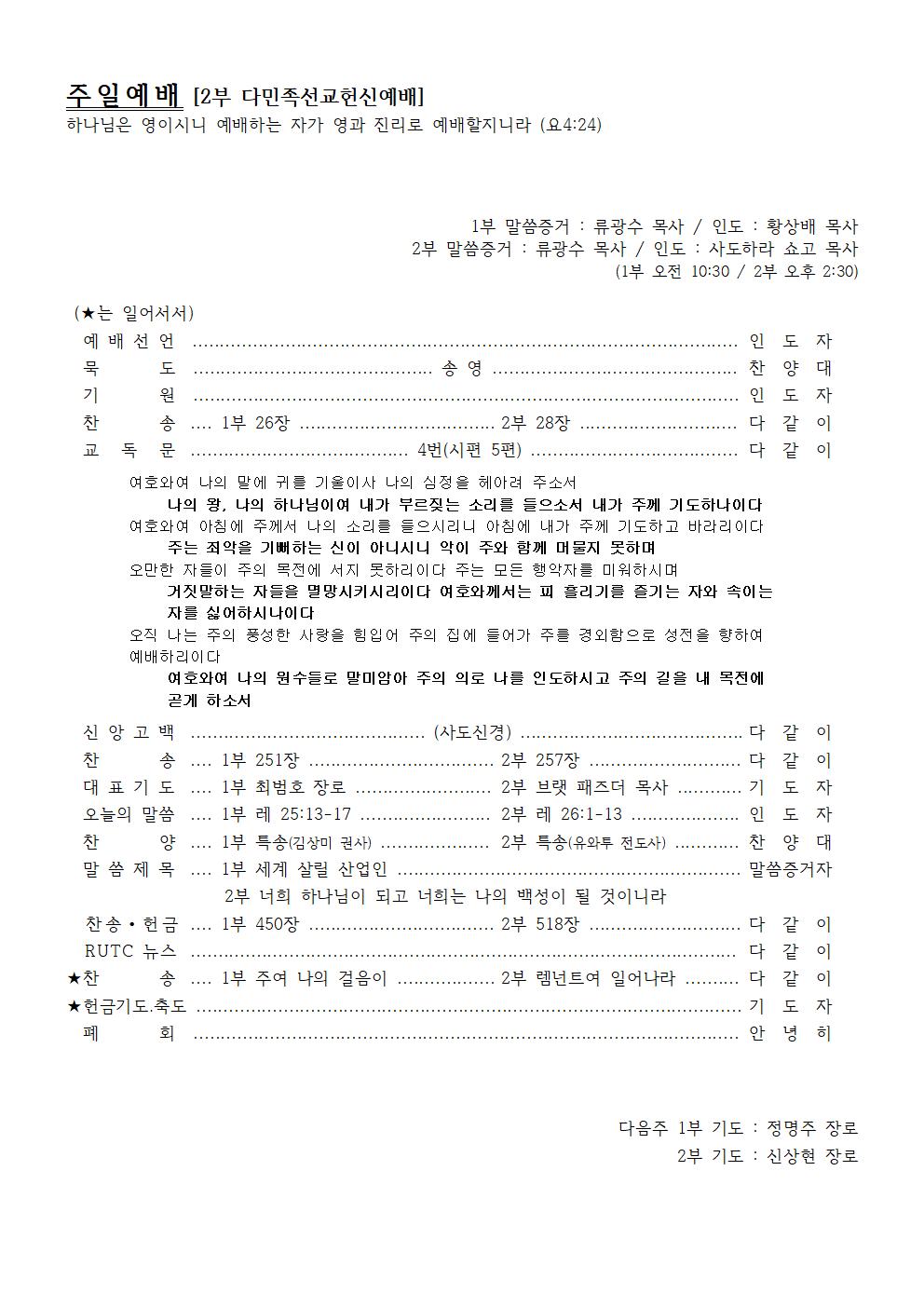 찬         송 …….1부 26장 ……………………………. 2부 28장 ………………………….. 다 같 이