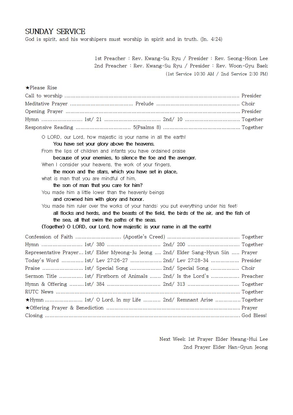 1st Preacher : Rev. Kwang-Su Ryu / Presider : Rev. Seong-Hoon Lee