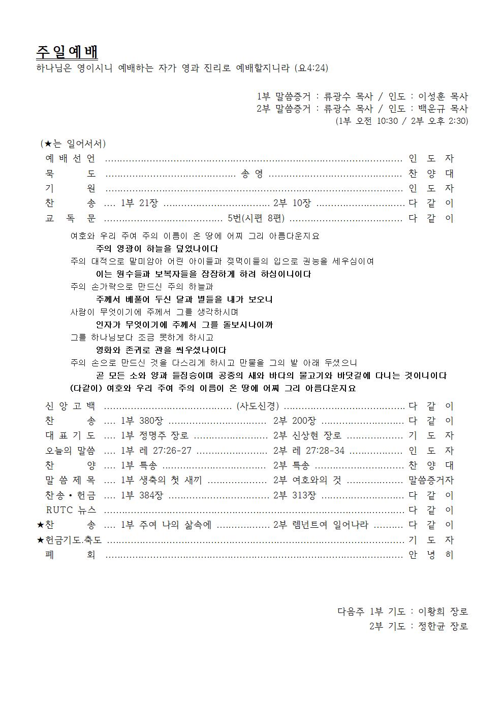 2020년 9월 27일 주일예배순서