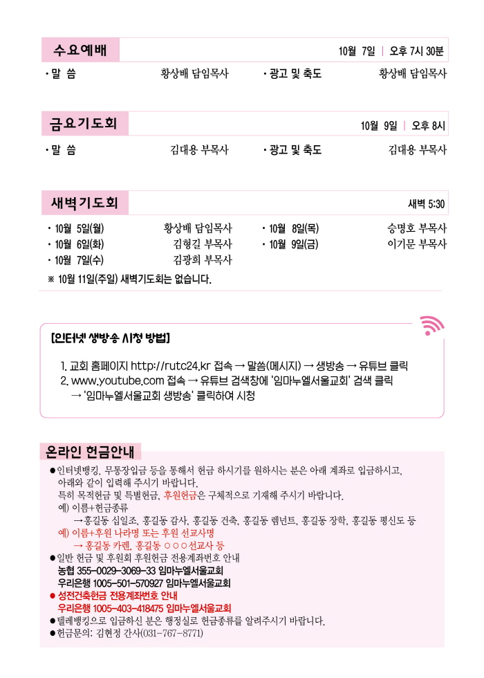 2024년 10월 20일 주일예배순서