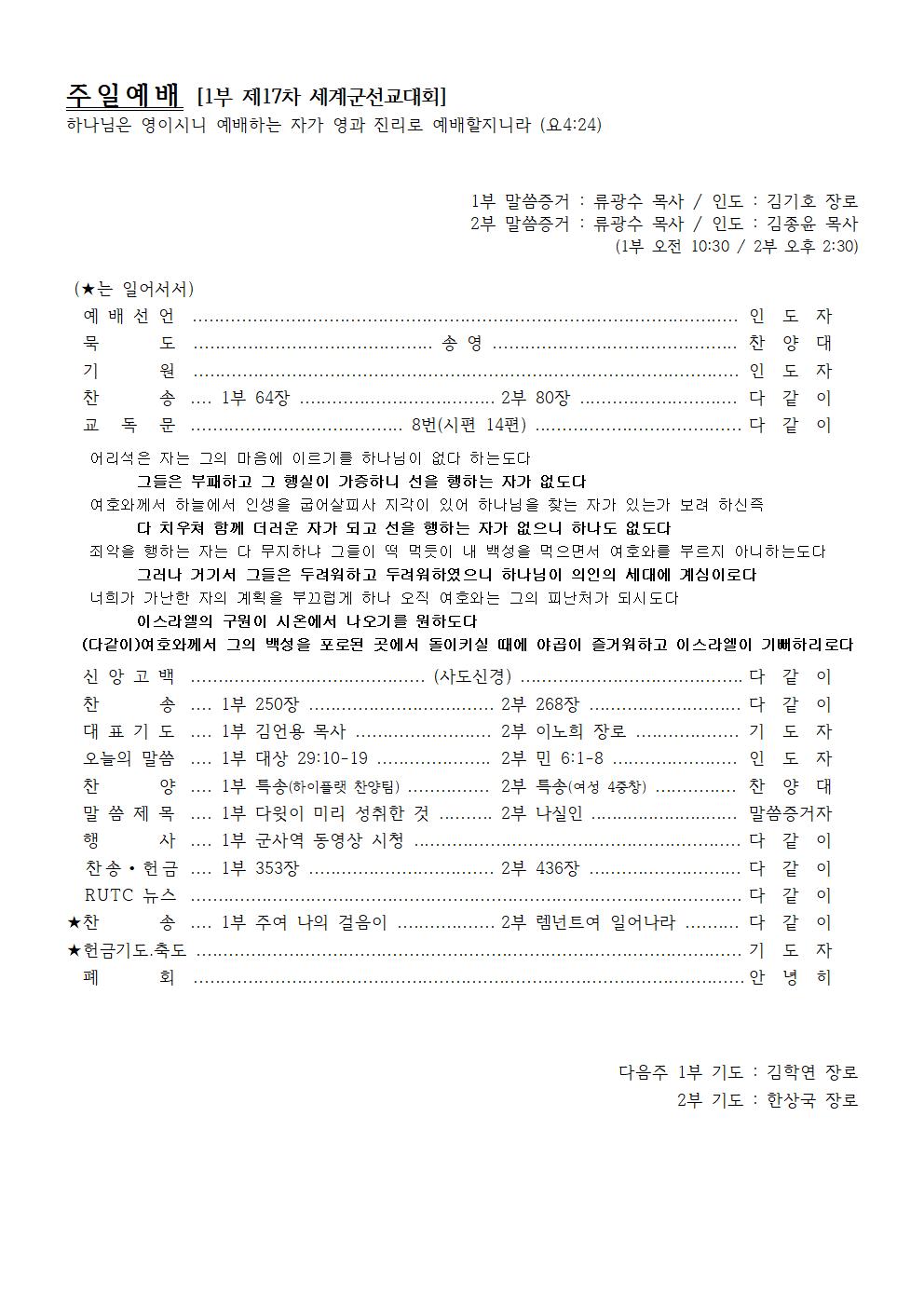 ★헌금기도․축도 …………………………………………………………………………….. 기 도 자