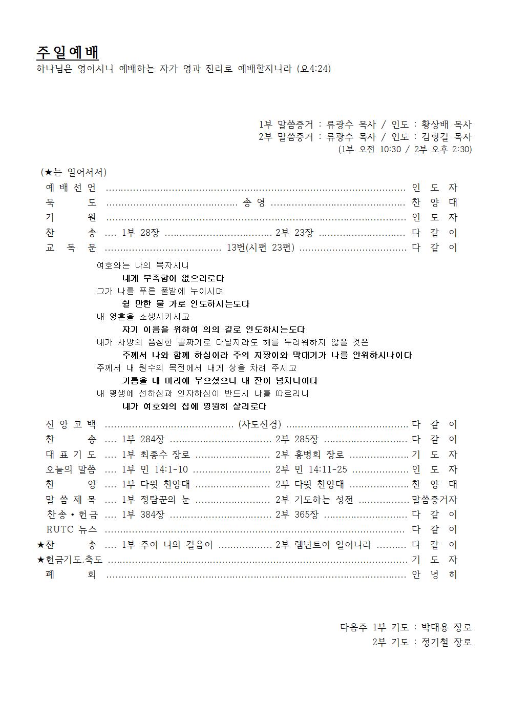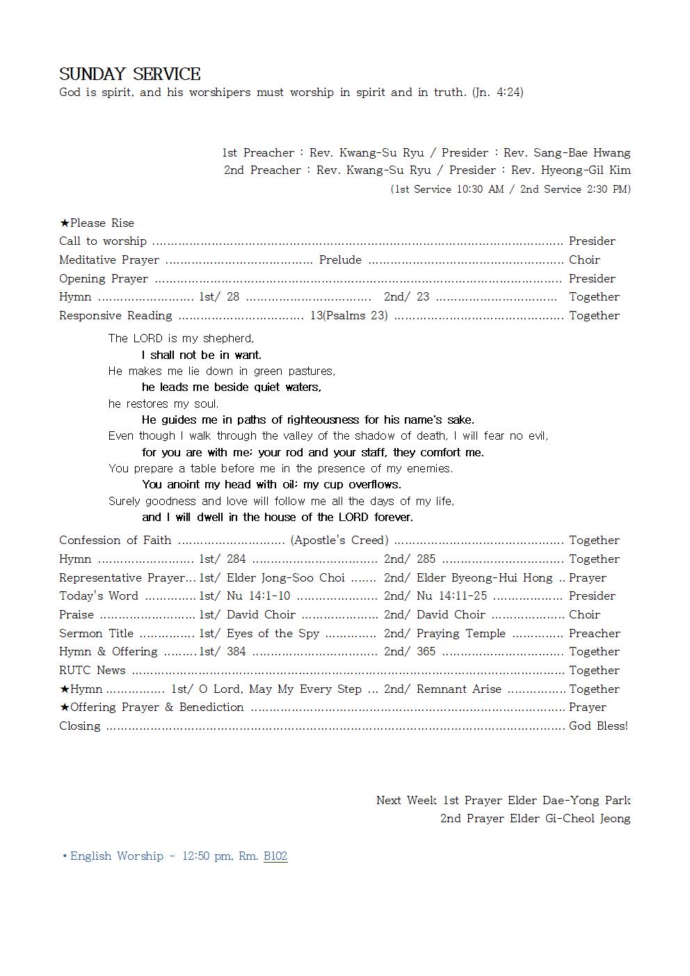 2nd Preacher : Rev. Kwang-Su Ryu / Presider : Rev. Hyeong-Gil Kim