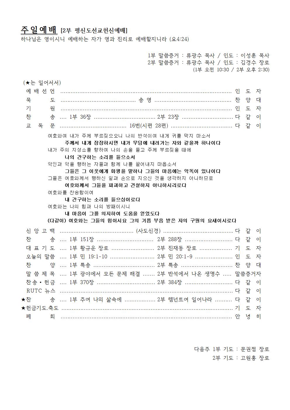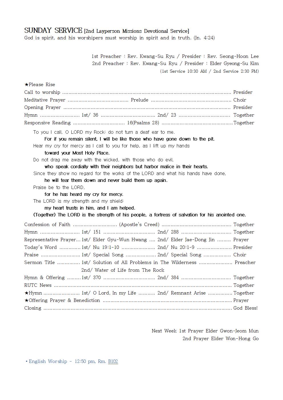 2nd Preacher : Rev. Kwang-Su Ryu / Presider : Elder Gyeong-Su Kim