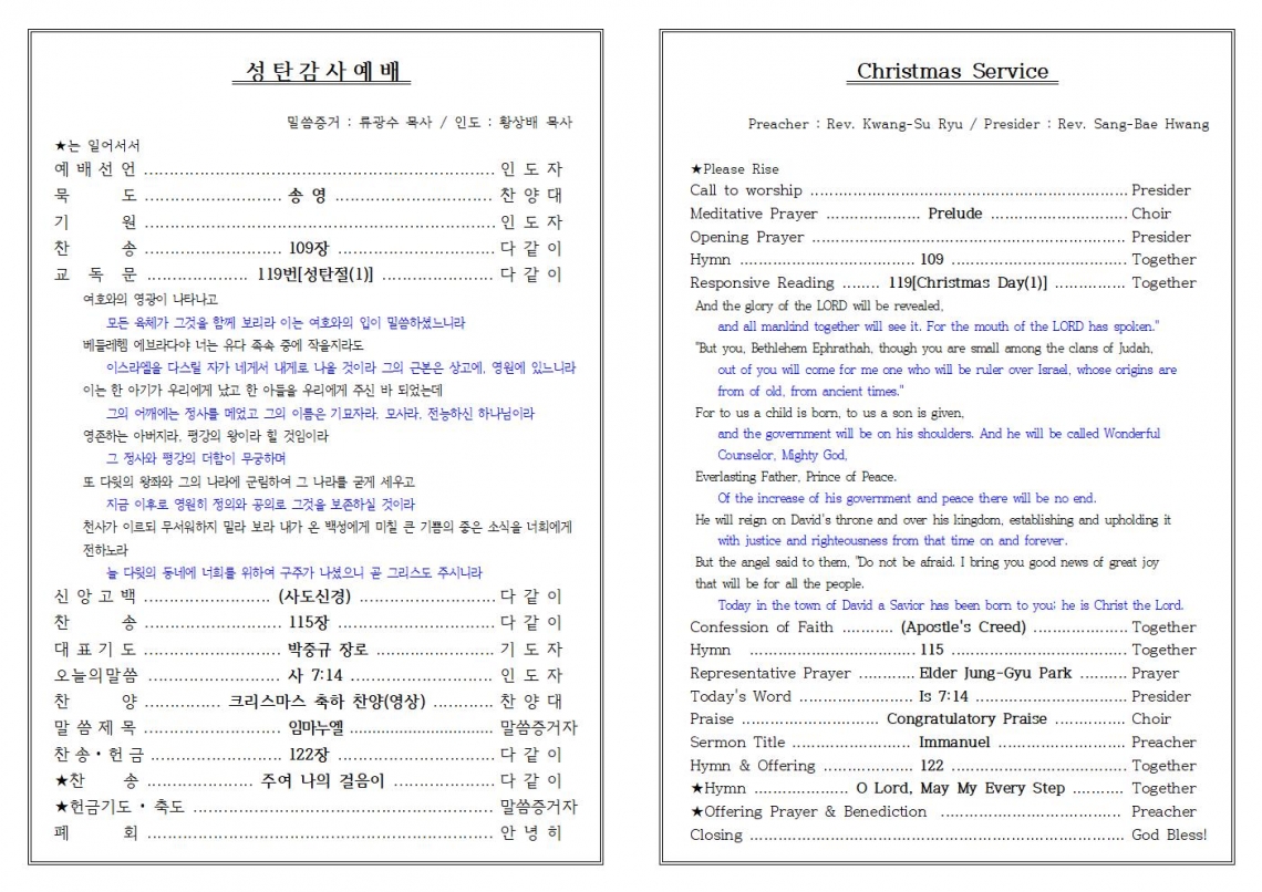 2020년 12월 25일 성탄예배순서