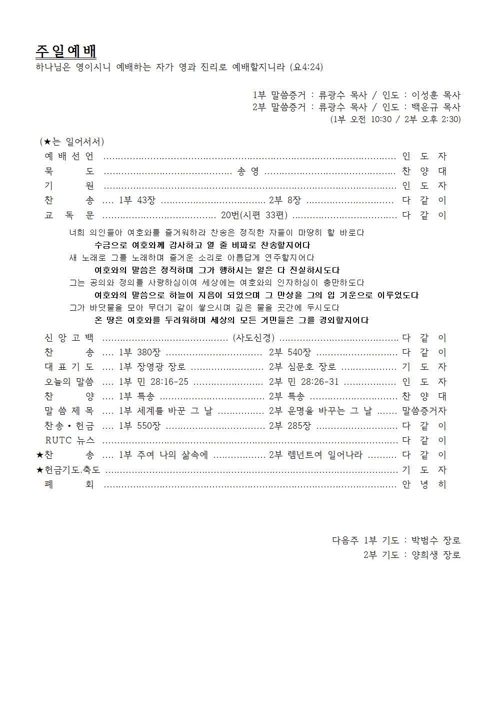 2021년 1월 17일 주일예배순서