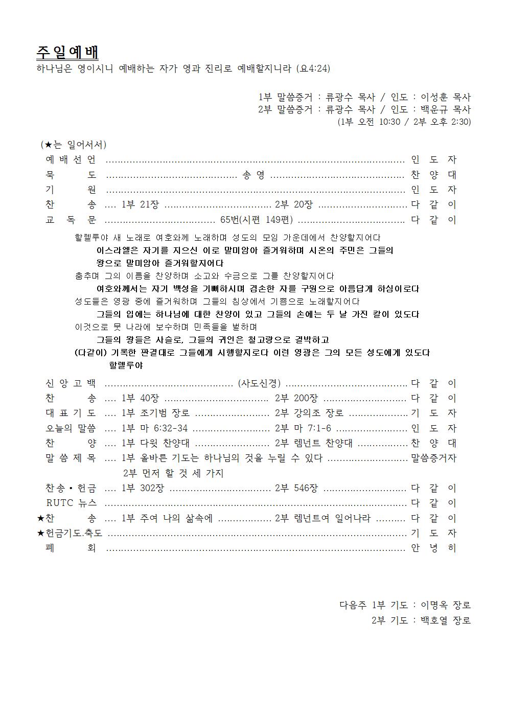 2nd Preacher : Rev. Kwang-Su Ryu / Presider : Rev. Woon-Gyu Baek