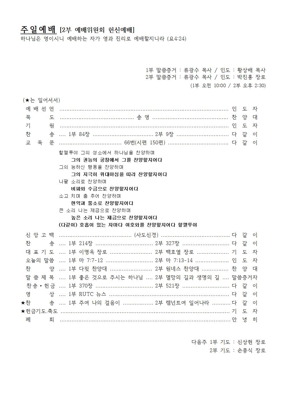 찬         양 …. 1부 다윗 찬양대 ……………………. 2부 원네스 찬양대 ……………. 찬 양 대