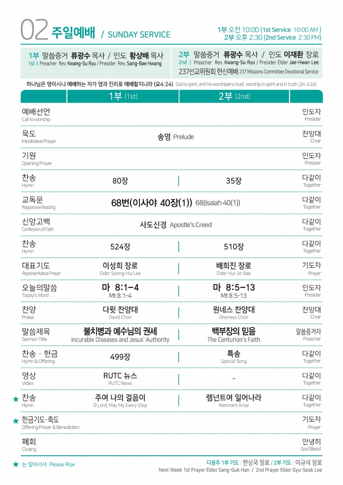 2024년 10월 20일 주일예배순서
