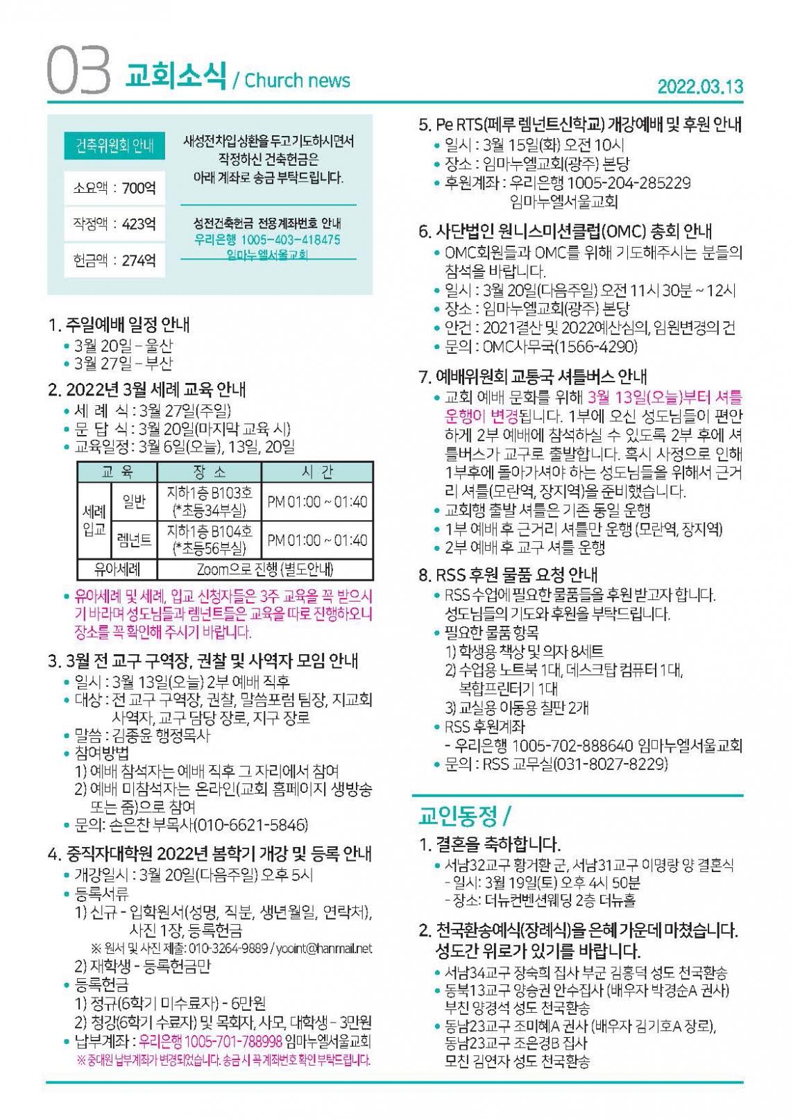 교회일정