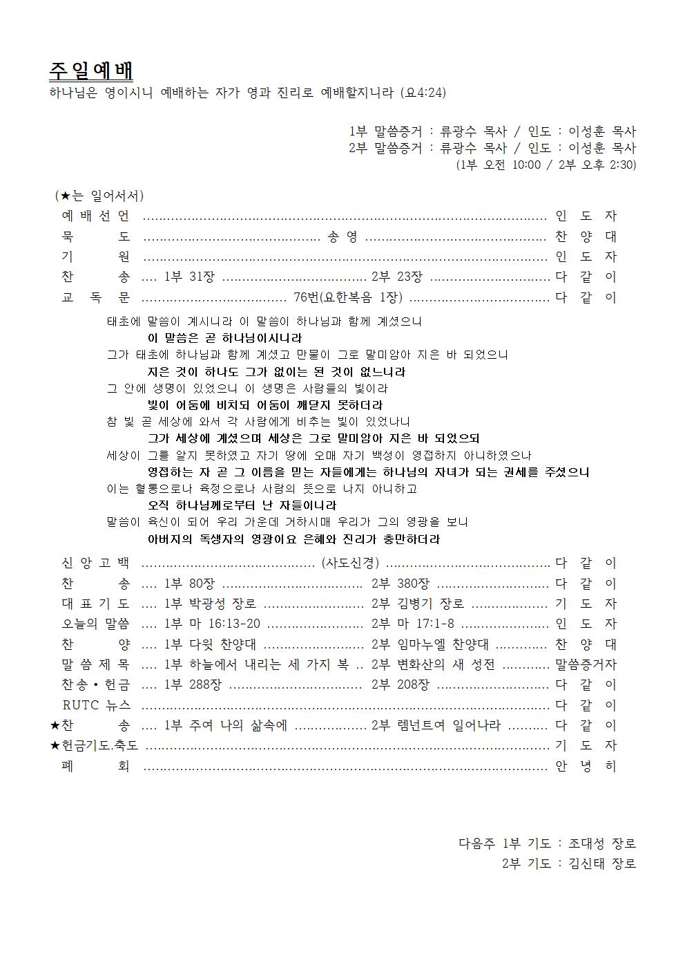 2nd Preacher : Rev. Kwang-Su Ryu / Presider : Rev. Seong-Hoon Lee