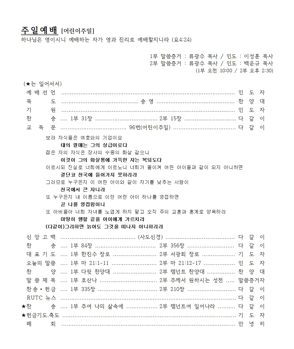 2022년 5월 1일 주일예배순서