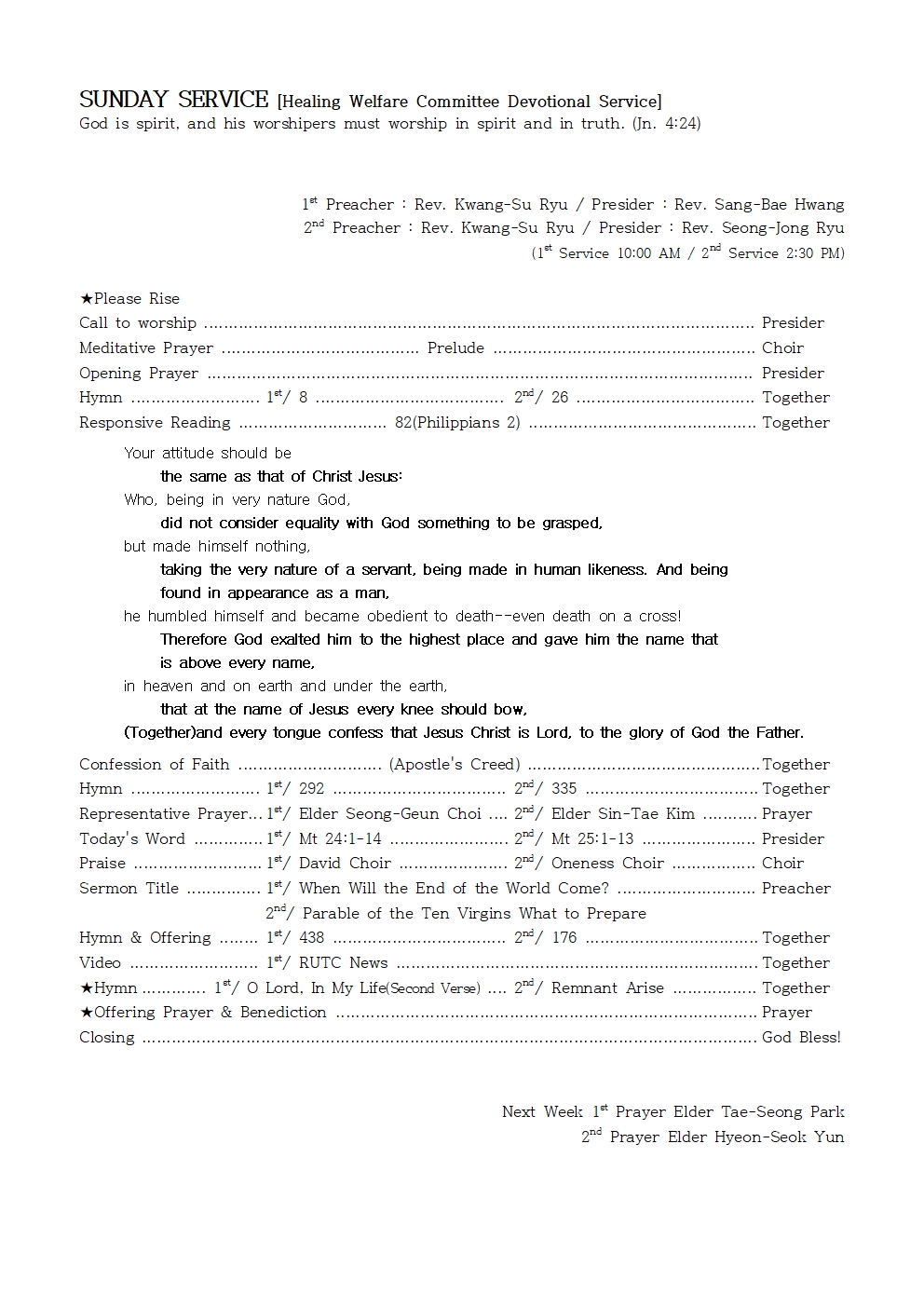 Next Week 1st Prayer Elder Tae-Seong Park