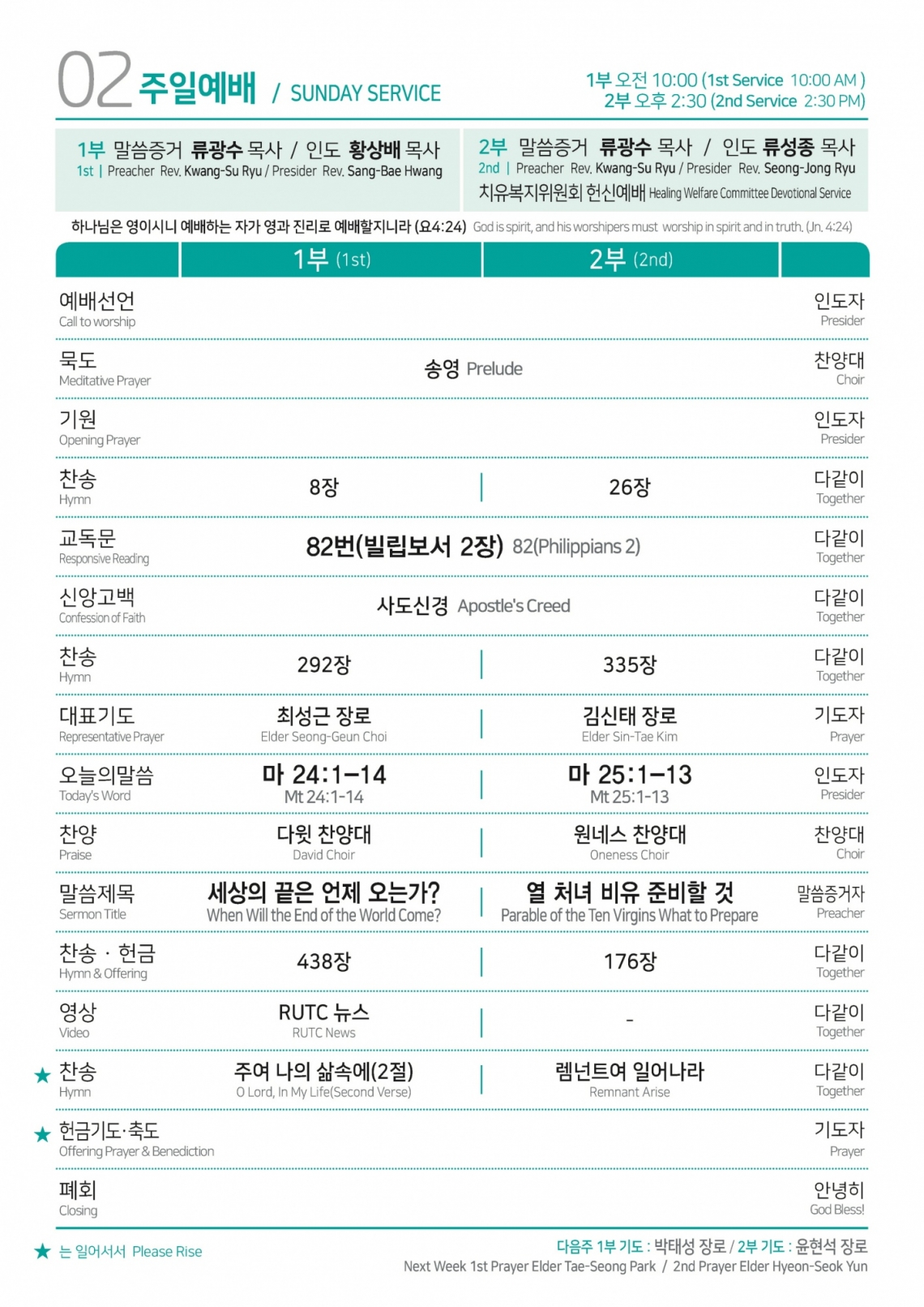 2024년 10월 20일 주일예배순서