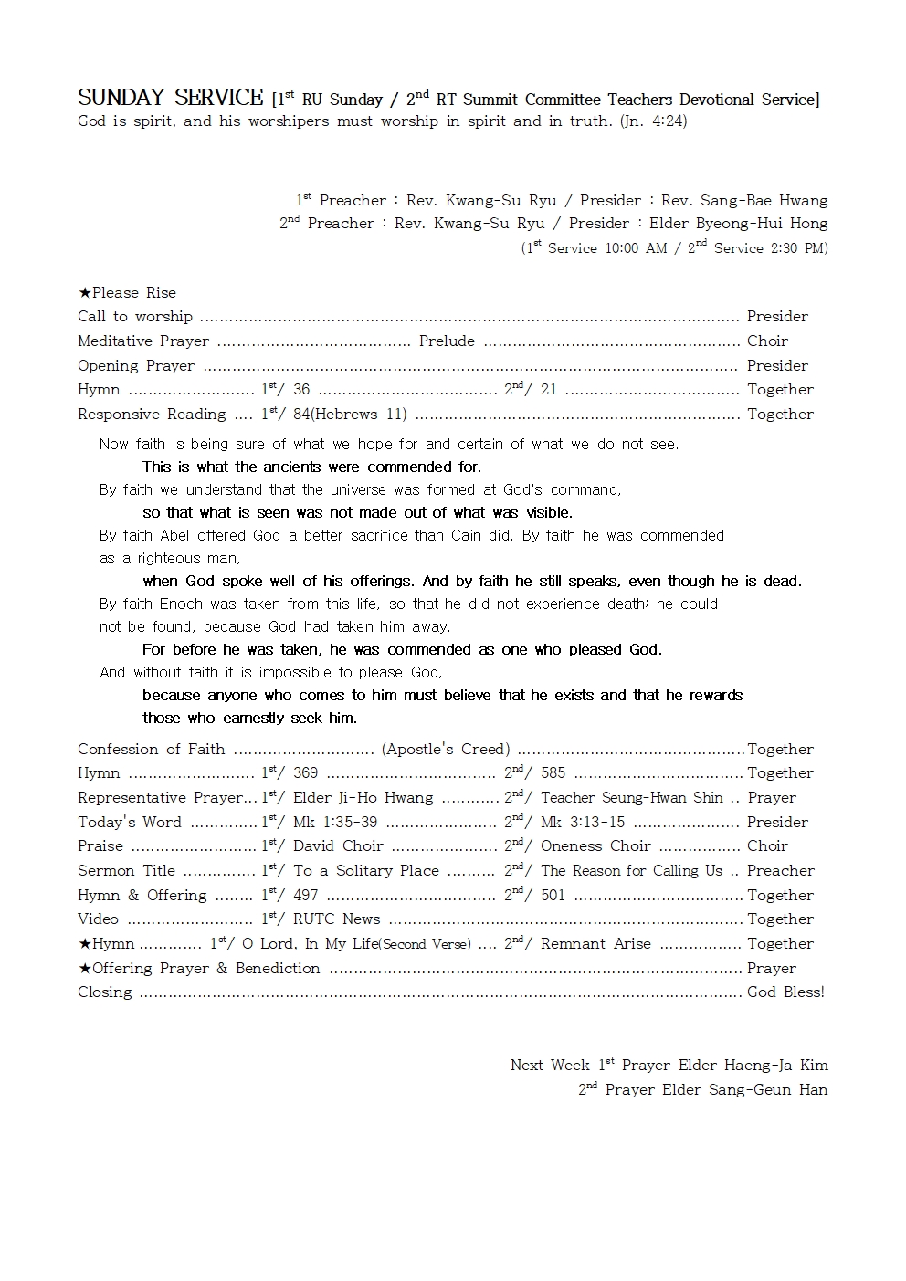 2nd Preacher : Rev. Kwang-Su Ryu / Presider : Elder Byeong-Hui Hong