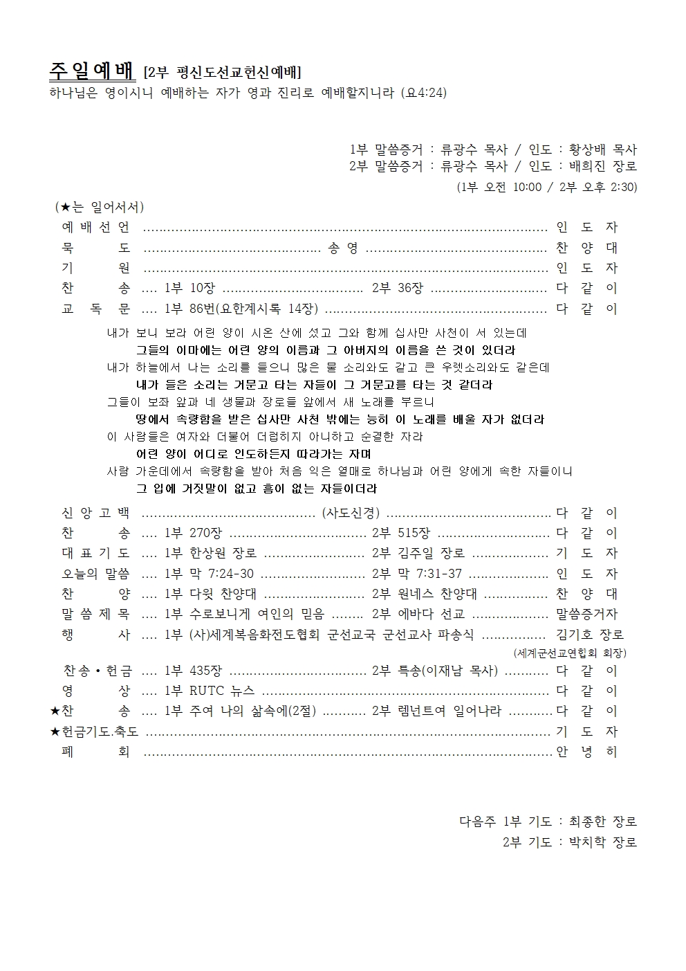 다음주 1부 기도 : 최종한 장로