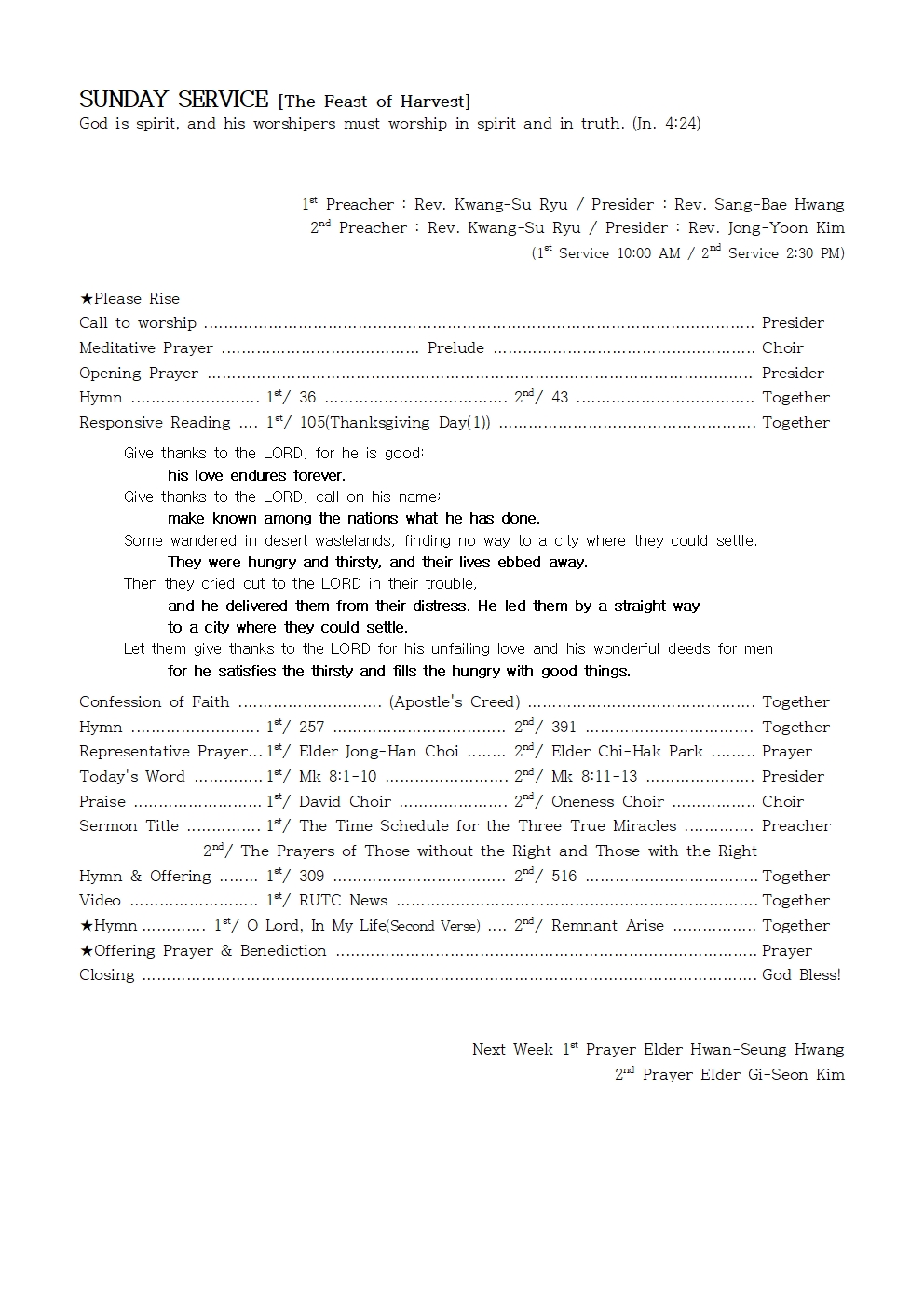 Next Week 1st Prayer Elder Hwan-Seung Hwang