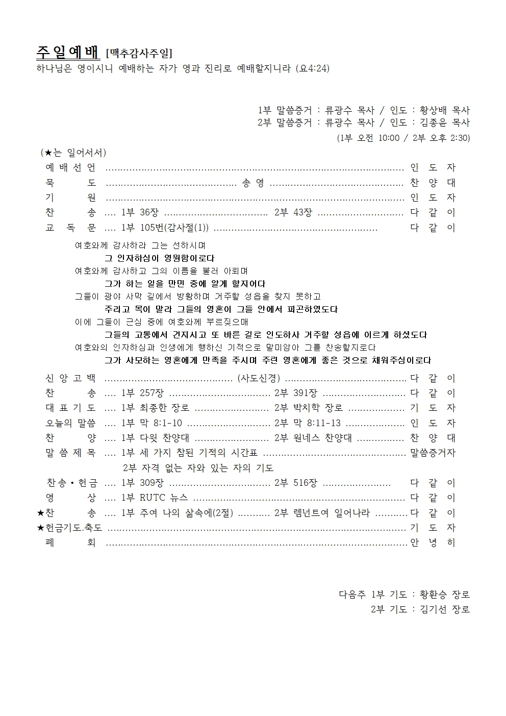 다음주 1부 기도 : 황환승 장로