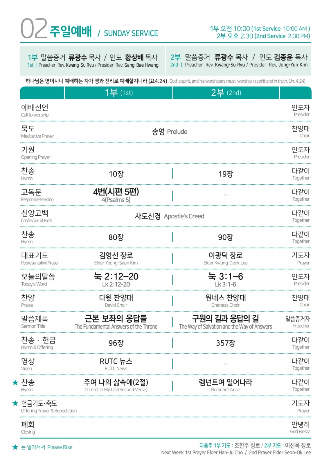 2024年10月20号 汉语礼拜顺序 首尔