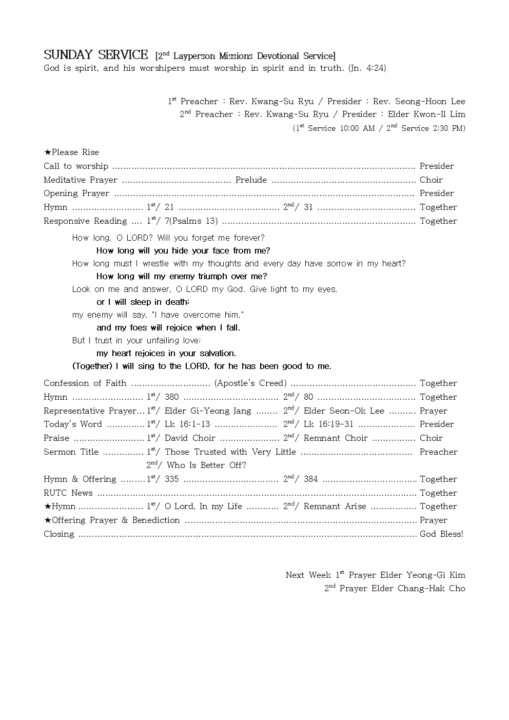 Next Week 1st Prayer Elder Yeong-Gi Kim