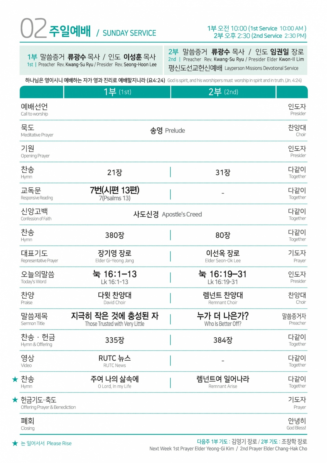 2024年10月20号 汉语礼拜顺序 首尔