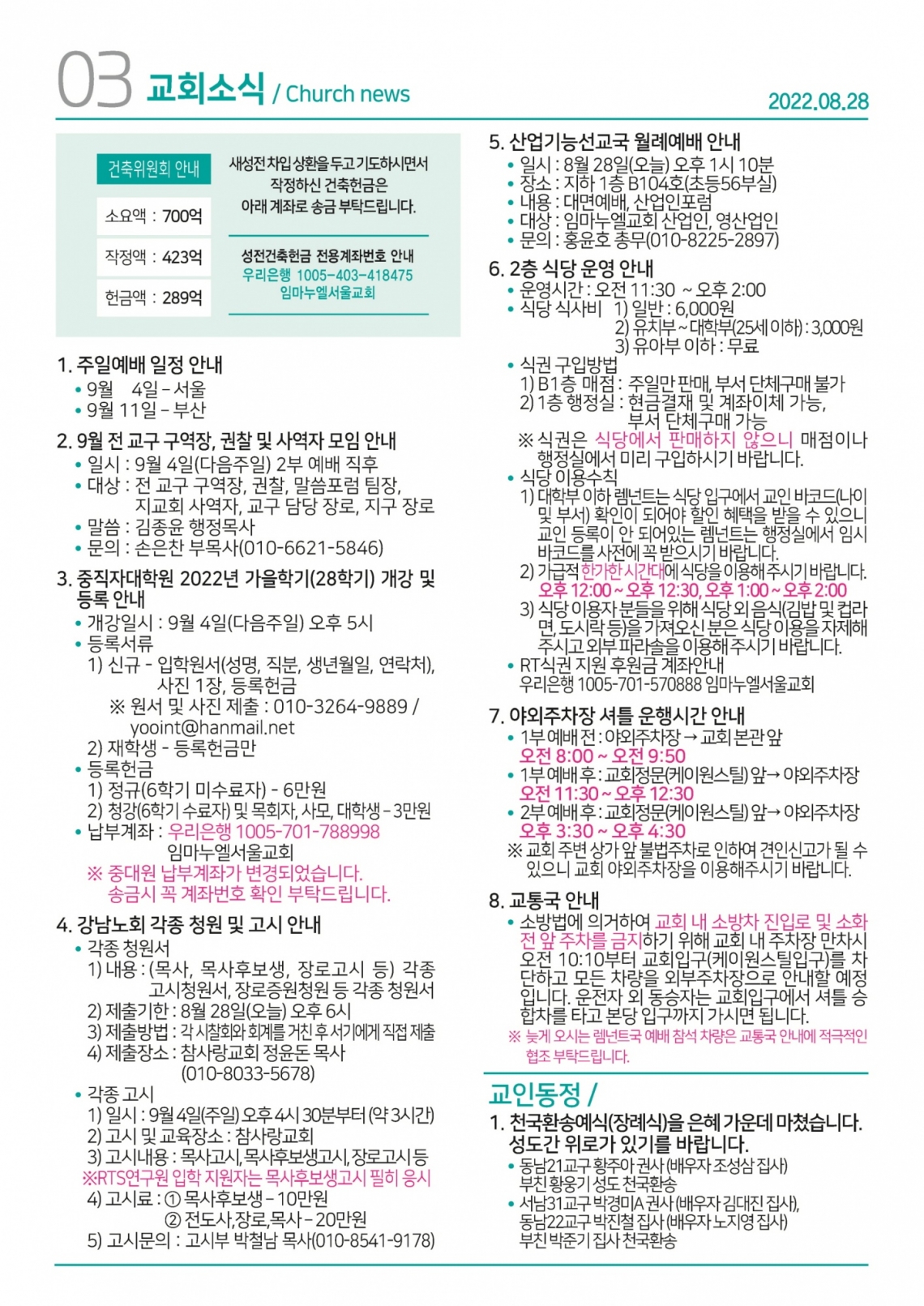 교회일정