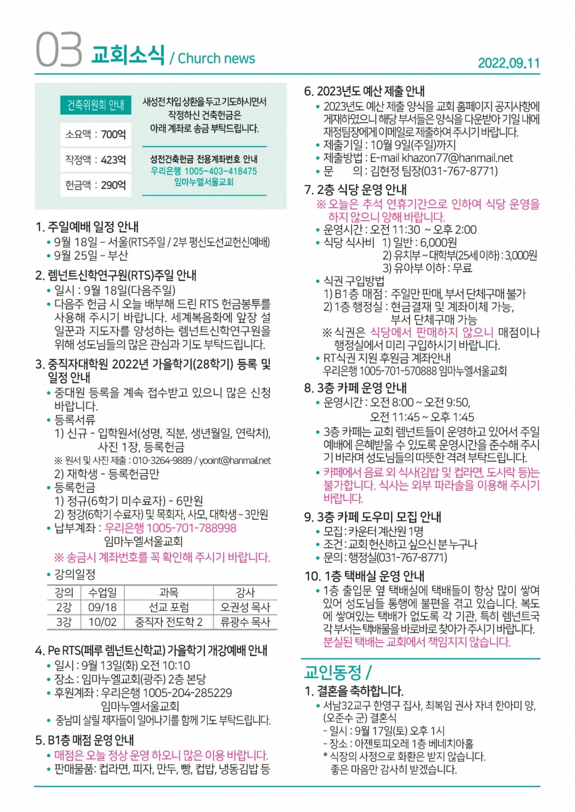 교회일정