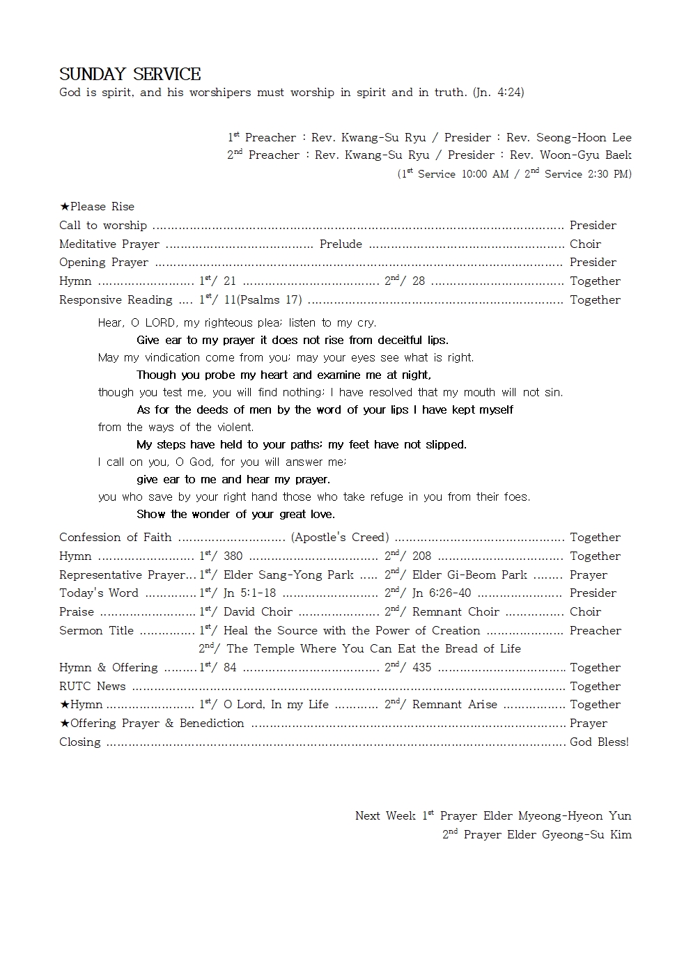 2nd Preacher : Rev. Kwang-Su Ryu / Presider : Rev. Woon-Gyu Baek