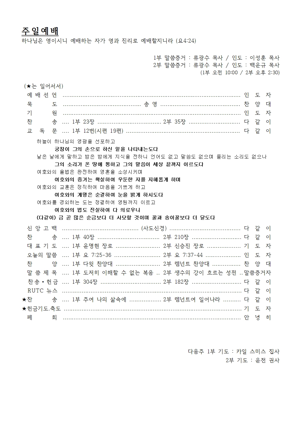 찬         송 …. 1부 23장 ……………………………… 2부 35장 ……………………….. 다 같 이