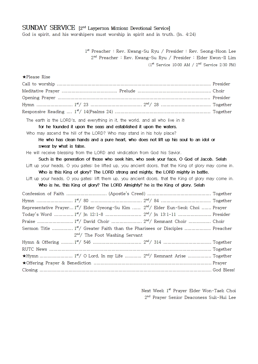 2nd Preacher : Rev. Kwang-Su Ryu / Presider : Elder Kwon-Il Lim