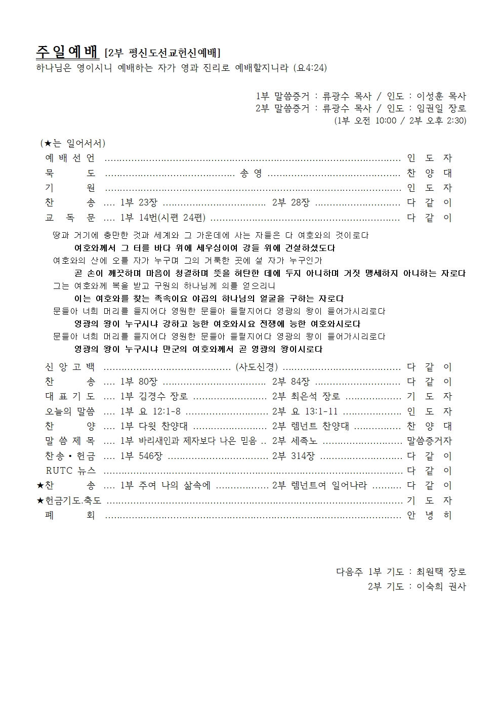 다음주 1부 기도 : 최원택 장로