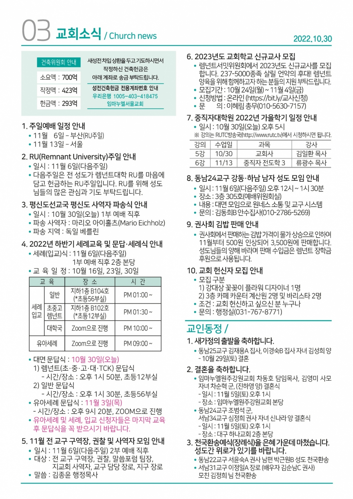 교회일정