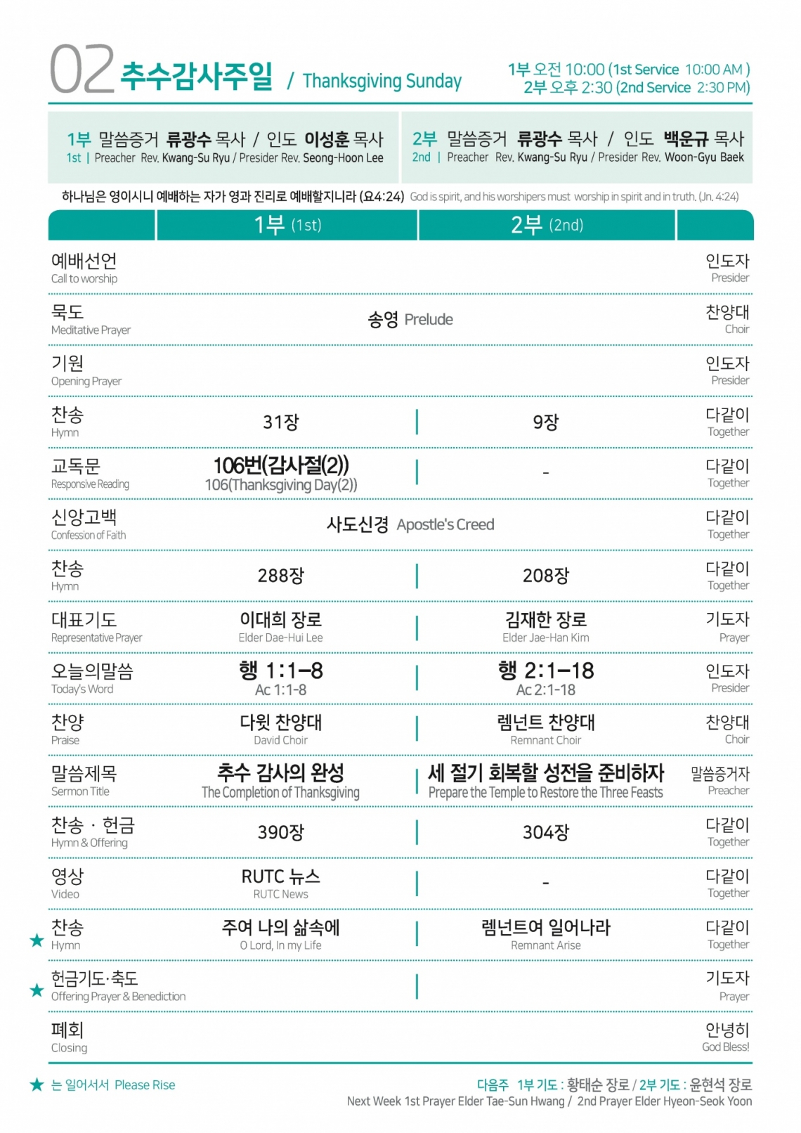 2024년 10월 20일 주일예배순서
