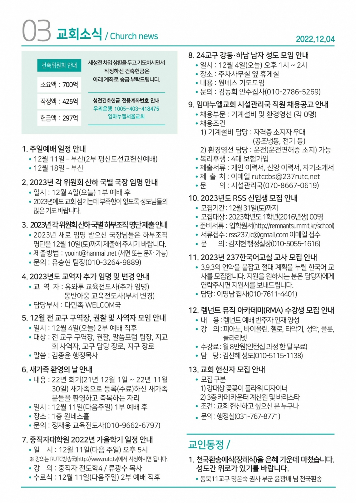 교회일정