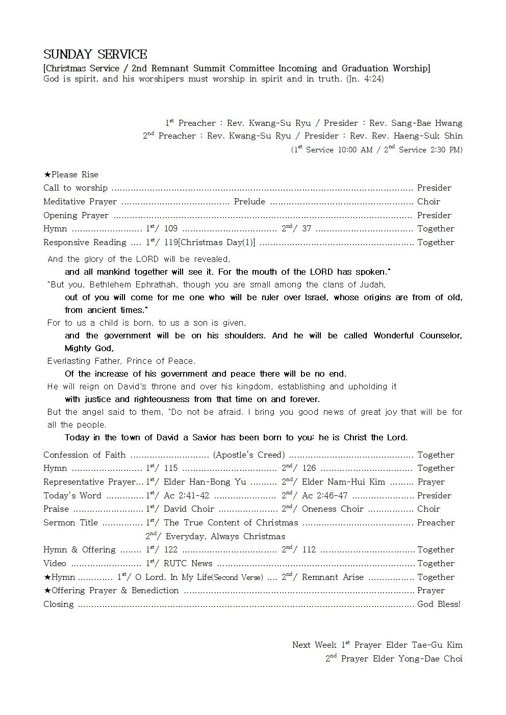 Next Week 1st Prayer Elder Tae-Gu Kim
