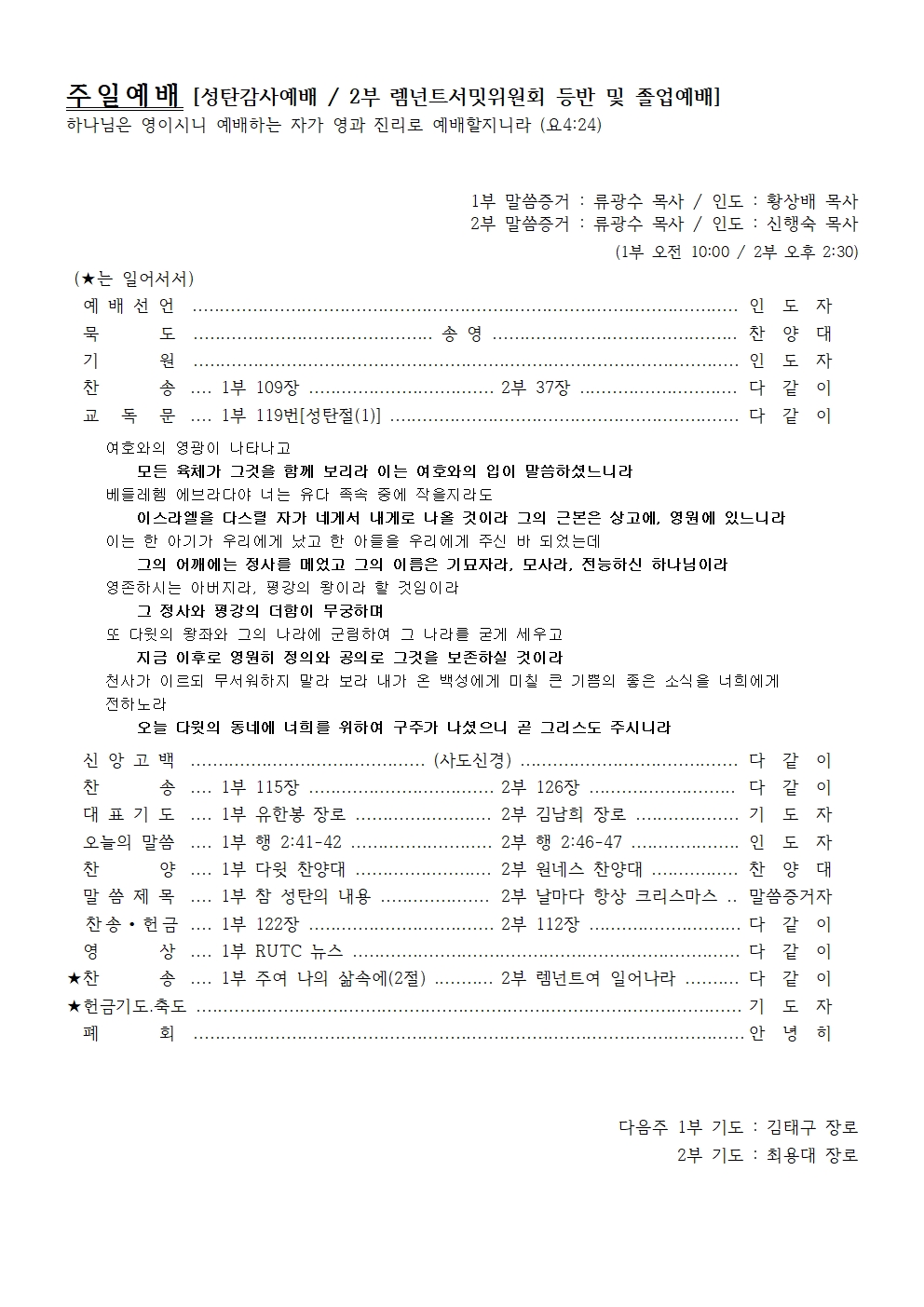 2022년 12월 25일 주일예배순서