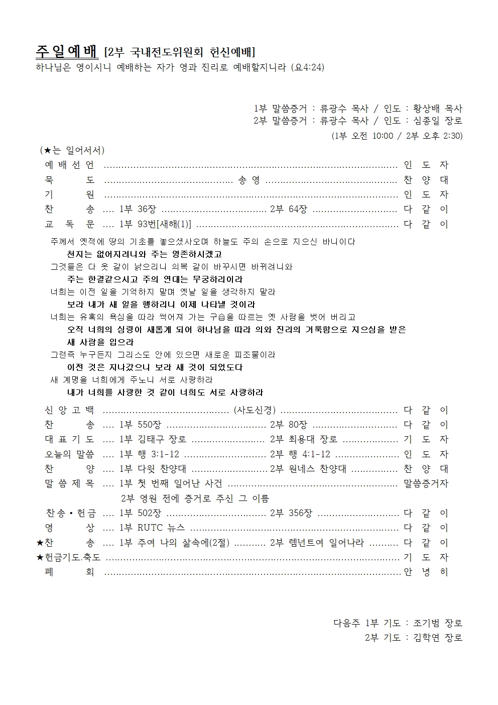 찬         송 …. 1부 36장 ……………………………… 2부 64장 ……………………….. 다 같 이
