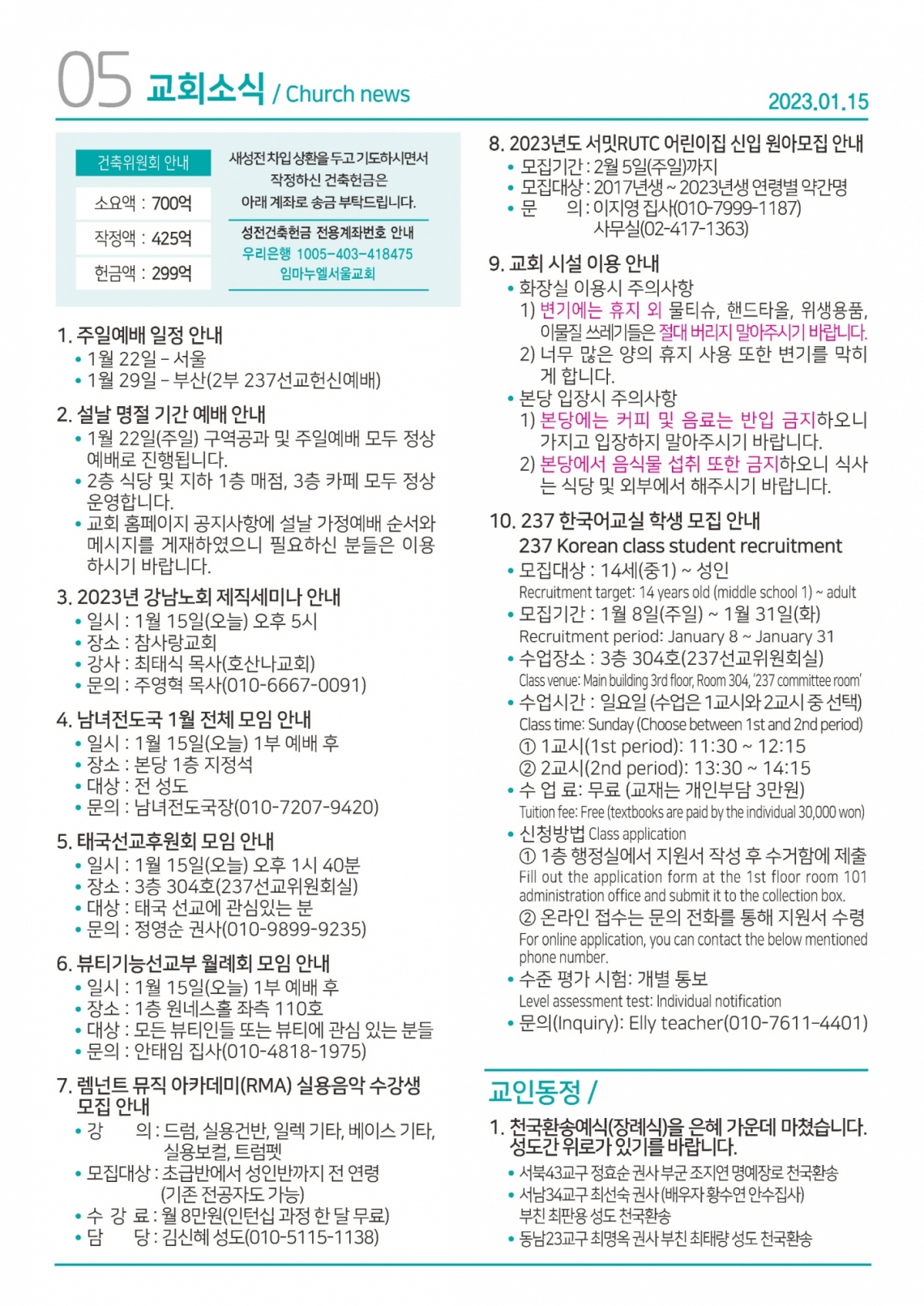 교회일정