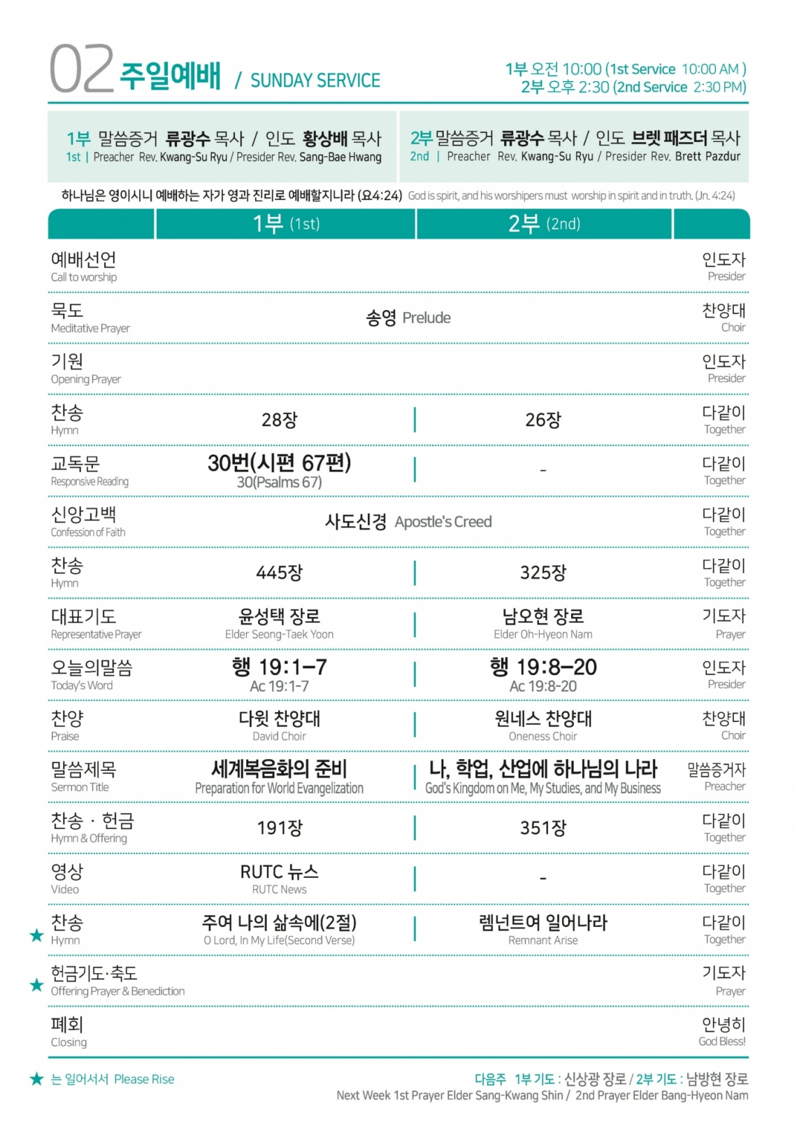 2024년 10월 20일 주일예배순서