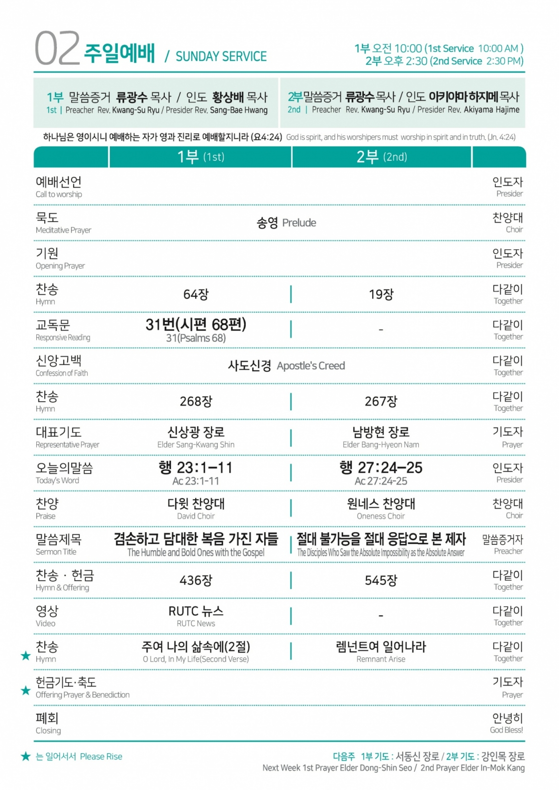 2024年10月20号 汉语礼拜顺序 首尔