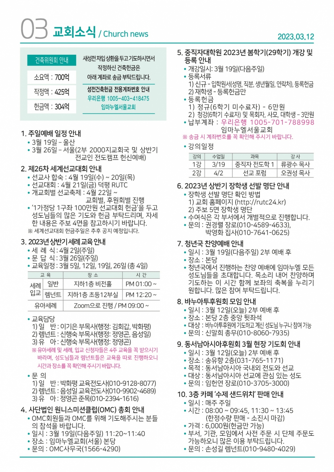 2023년 3월 12일 주보